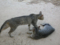 À medida que crescem, as crias vão diminuindo em número, geralmente de seis para duas, para cada gata. Não ficam vestígios no local, é para mim um mistério ainda por desvendar. As gatas não parecem muito incomodadas com o desaparecimento. Mas, no final de fase, tornam-se mães galinhas e andam sempre com o coração aos pulos em cima dos dois meninos jesuses restantes.